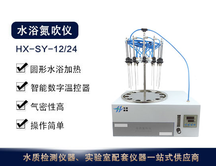HX-SY-12/24水浴氮吹儀采用國際認可技術,利用吹掃捕集技術,同時可對樣品進行控溫加熱,通過氮氣等惰性氣體快速、可控、連續地吹到樣品表面來達到樣品溶液快速無氧濃縮